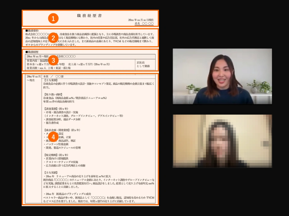 延べ300名以上の採用担当者にヒアリングした知見を持って、書類選考に通過しやすい履歴書・職務経歴書の作成をサポートします。学歴・職歴に自信がない場合でも「この人に一度会ってみたい」と思われる書類作成のコツをお伝えできます。